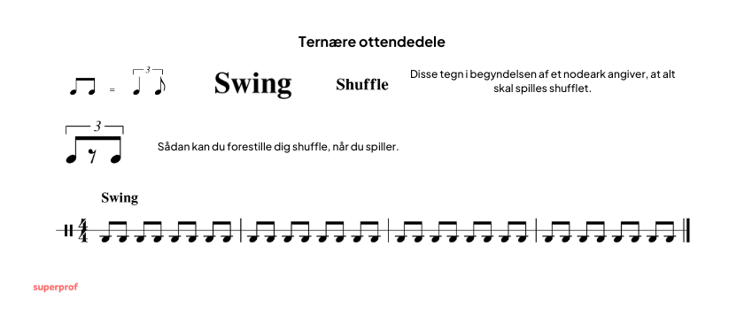 Denne spillemåde kaldes ternær, fordi den bygger på en tredeling af slaget, altså trioler. Når man spiller ternære ottendedele, udelades midterste trioleslag hver gang.