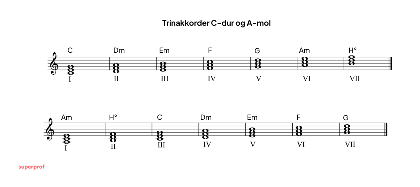 En stor del af vestlig musik bygger på såkaldte trinstakkkorder. Det er akkorder bygget på en dur- eller moll-skala og udnytter derfor det samme tonemateriale.